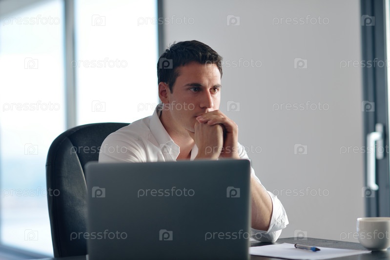 Деловой человек работает на ноутбуке