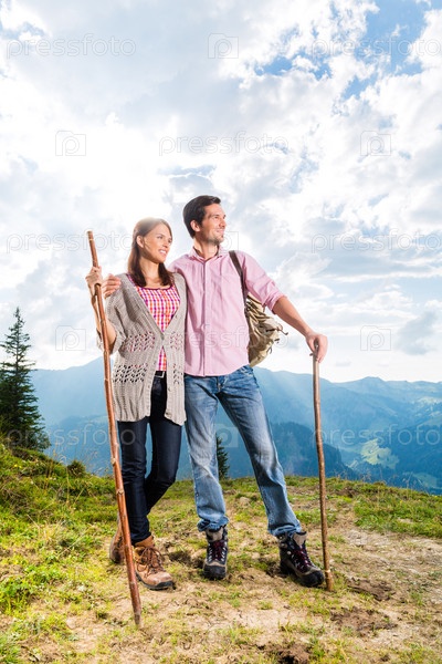 Пара на пешей прогулке в Баварских Альпах