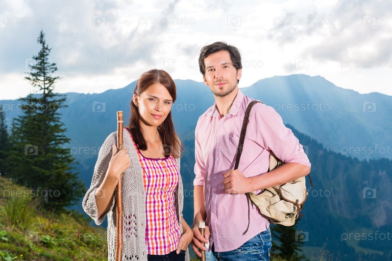 Пара на пешей прогулке в Баварских Альпах