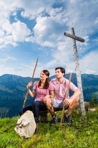 Пара на пешей прогулке в Баварских Альпах