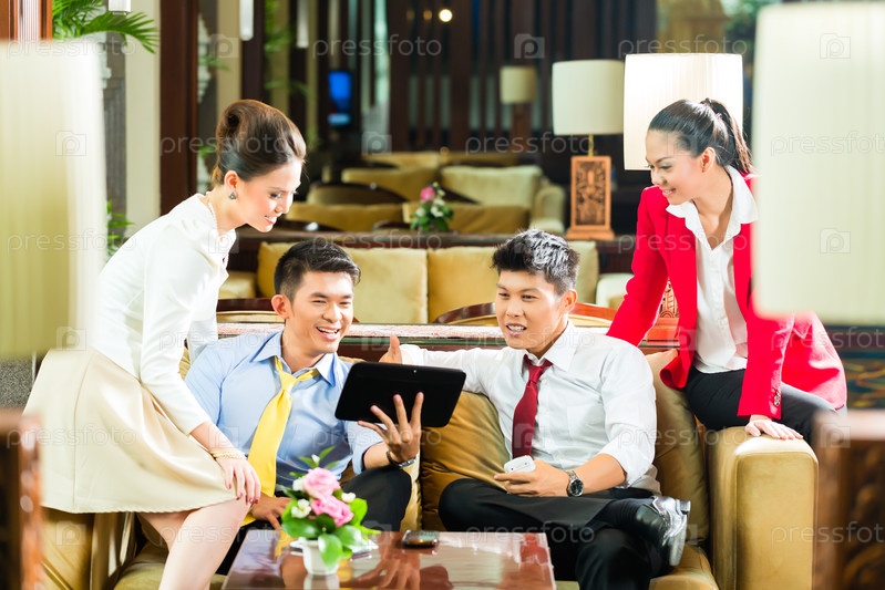 Деловые люди в вестибюле отеля