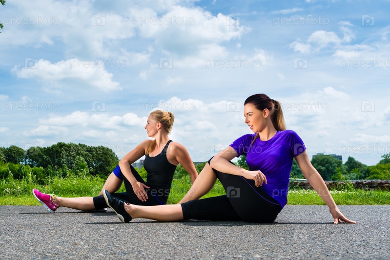Женщины занимаются фитнесом в парке