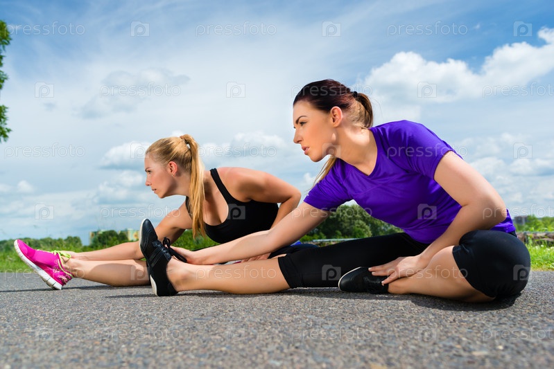 Женщины занимаются фитнесом в парке