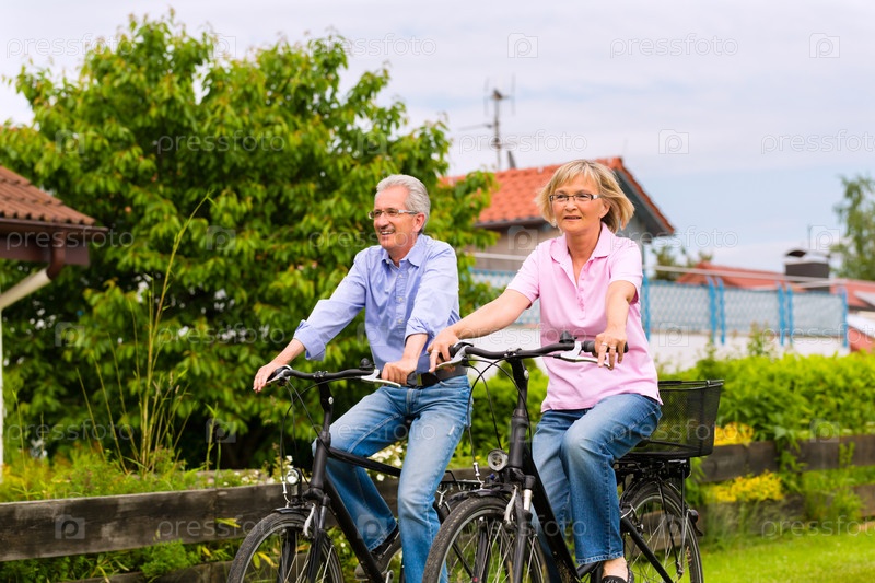 Пожилая пара на велосипедах