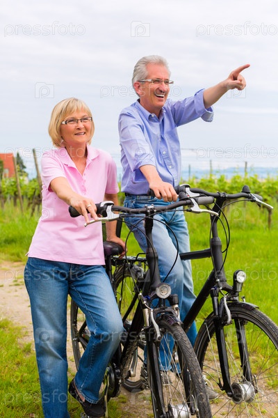 Пожилая пара на велосипедах