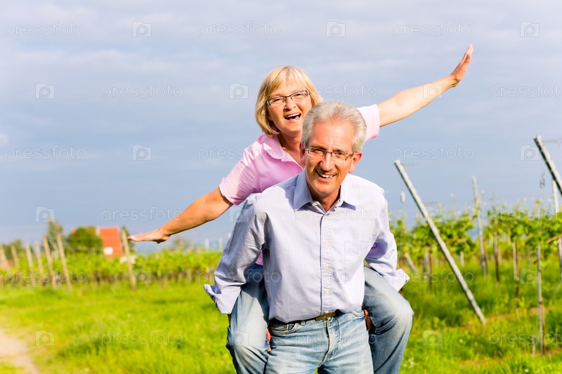 Пожилой мужчина и женщина на природе