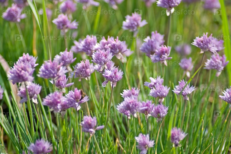Цветы дикого лука в солнечный летний день