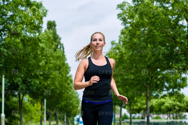 Молодая женщина на пробежке в парке