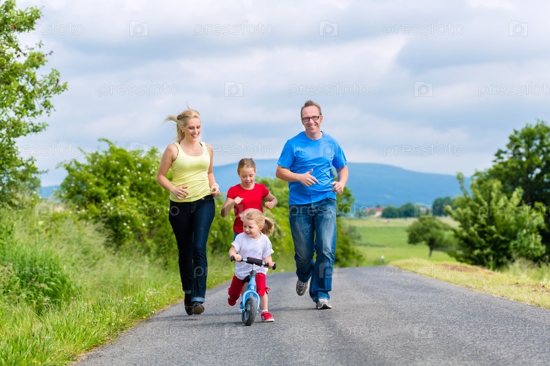 Счастливая семья на пробежке