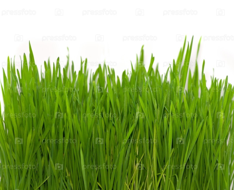Зеленая трава на белом фоне
