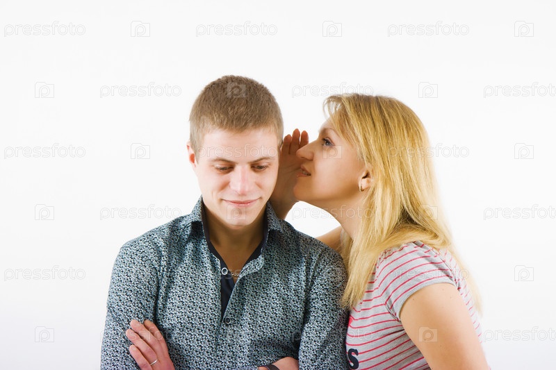 Девушка прислонилась к молодому человеку, говоря на ушко