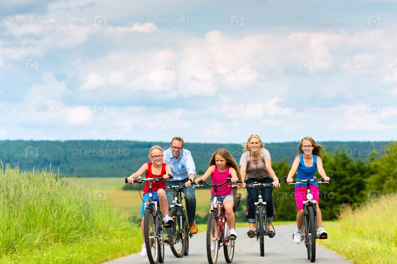 Семья на велосипедной прогулке
