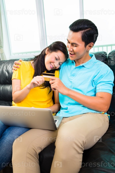 Азиатская пара делает покупки в интернете
