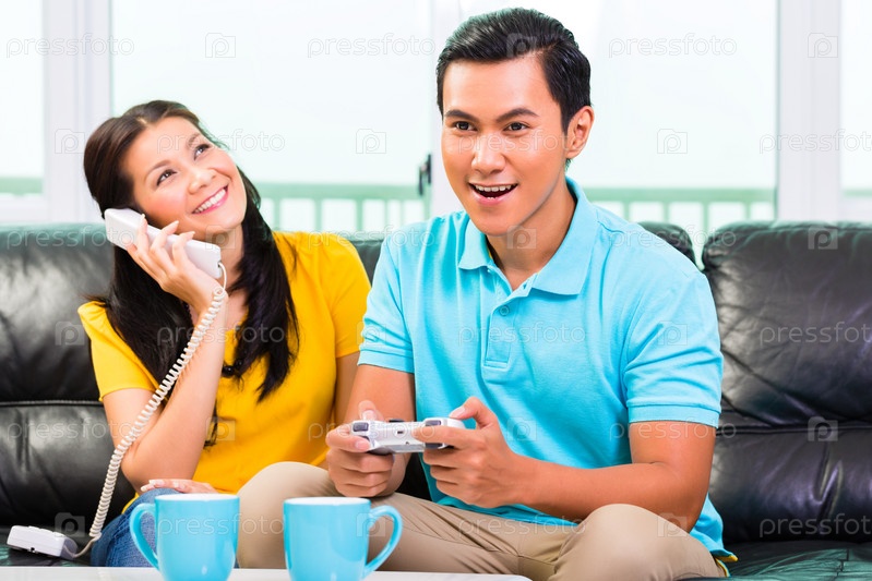 Азиатская пара отдыхает дома