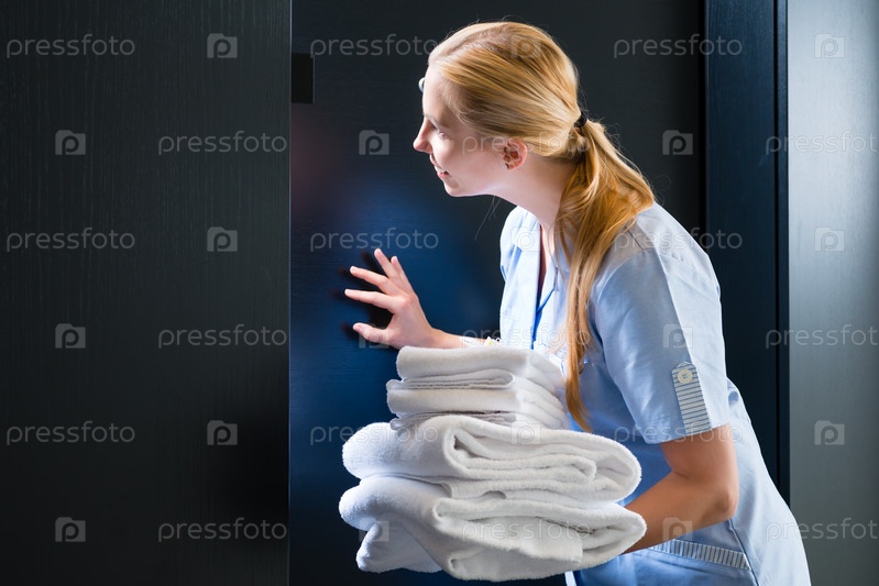 Горничная с полотенцами в отеле