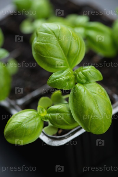 Растущий зеленый базилик