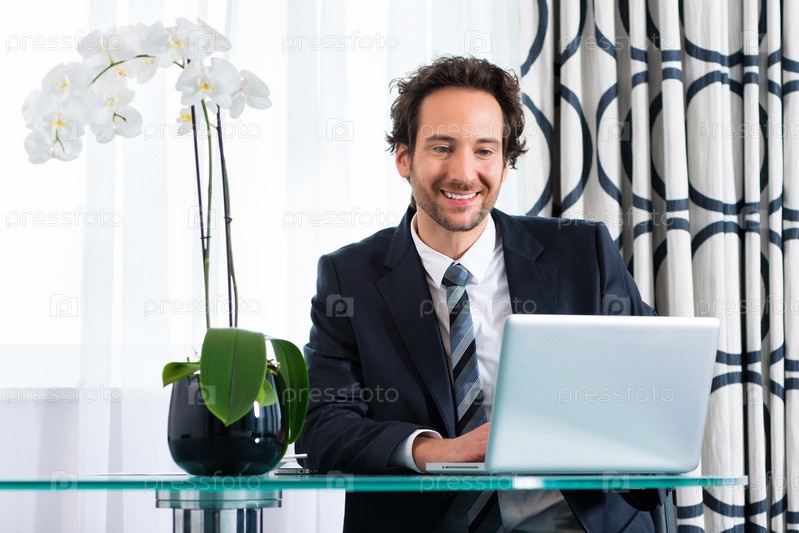 Бизнесмен работает на ноутбуке
