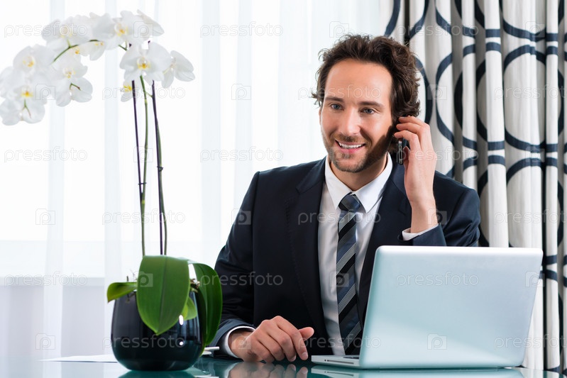 Бизнесмен работает на ноутбуке