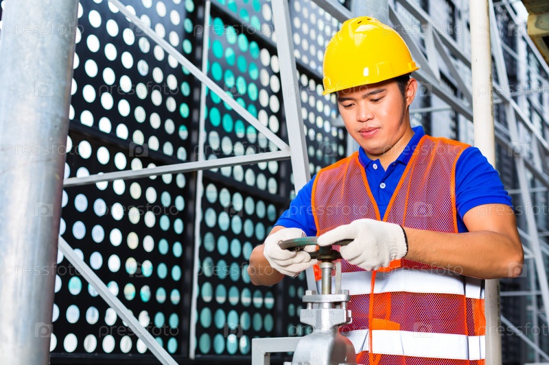 Техник поворачивает клапан