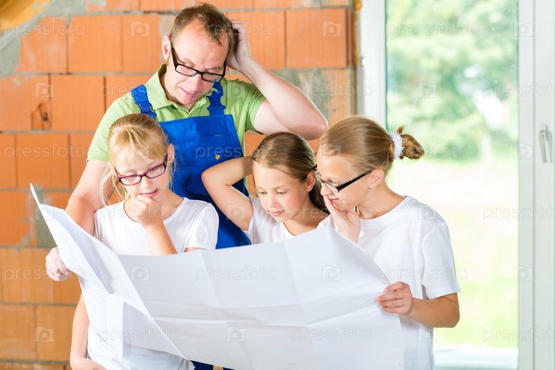 Семья смотрит план будущего дома