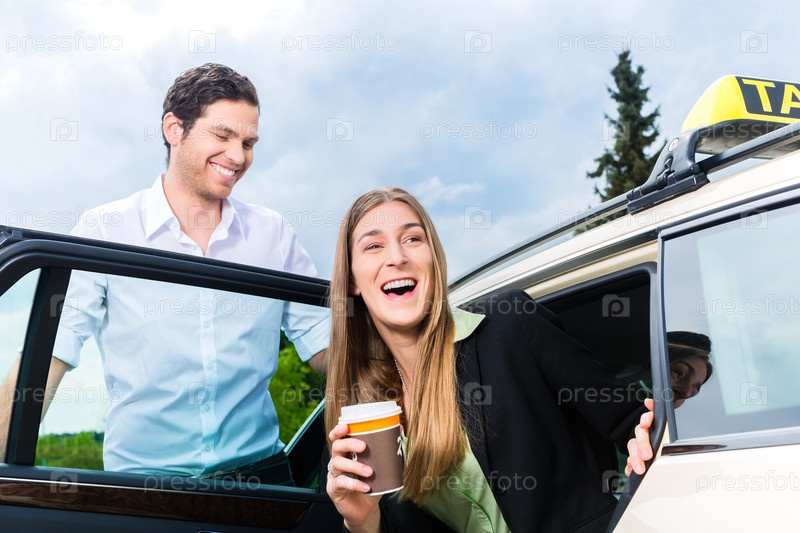 Бизнес-леди выходит из такси