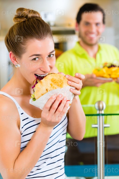 Клиент ест свежую шаурму в кафе