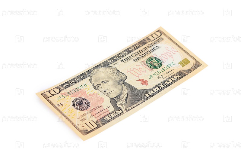 Десять долларов, изолированные на белом