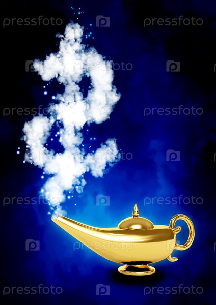 Волшебная лампа и символ доллара