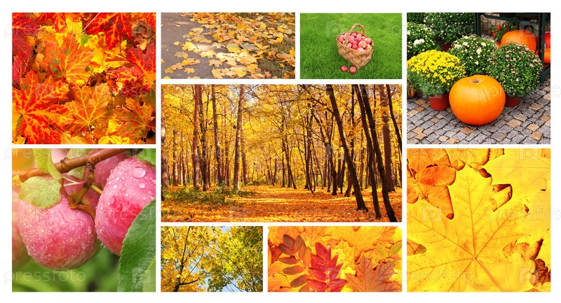 Коллаж с осенними листьями и яблоками