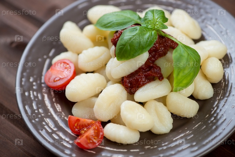 Вареные итальянские ньокки с томатным соусом и зеленым базиликом