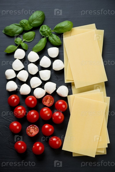 Базилик, помидоры, сыр и лазанья