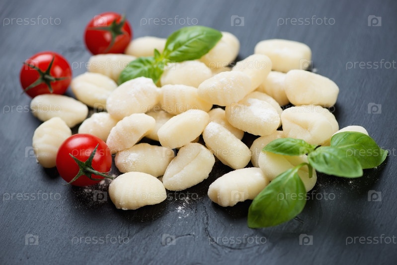Сырые ньокки с помидорами черри и зеленым базиликом