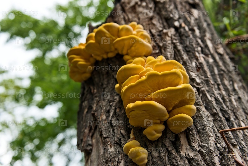 Съедобный трутовик на стволе дерева