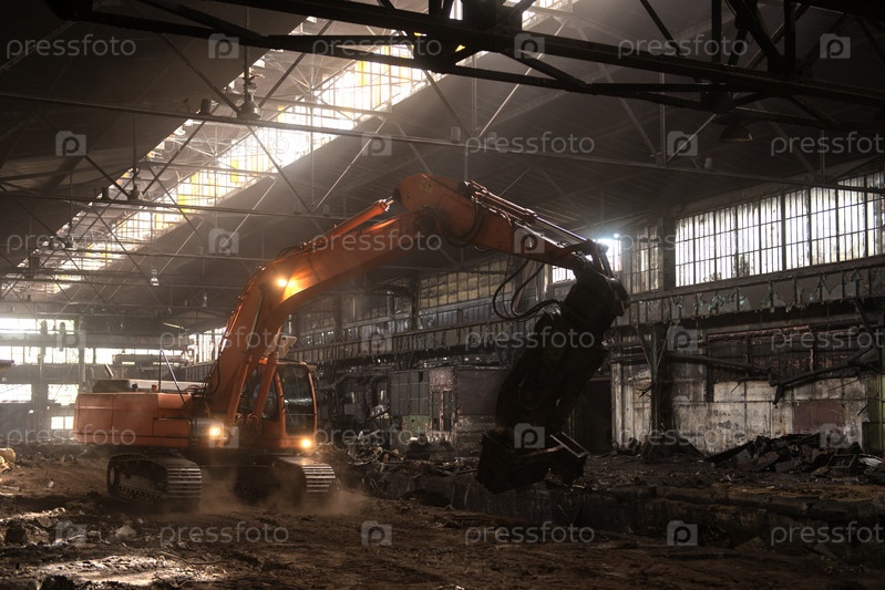 Бульдозером в промышленном интерьере