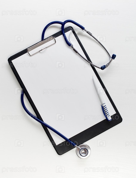 Папка-планшет, ручка и стетоскоп