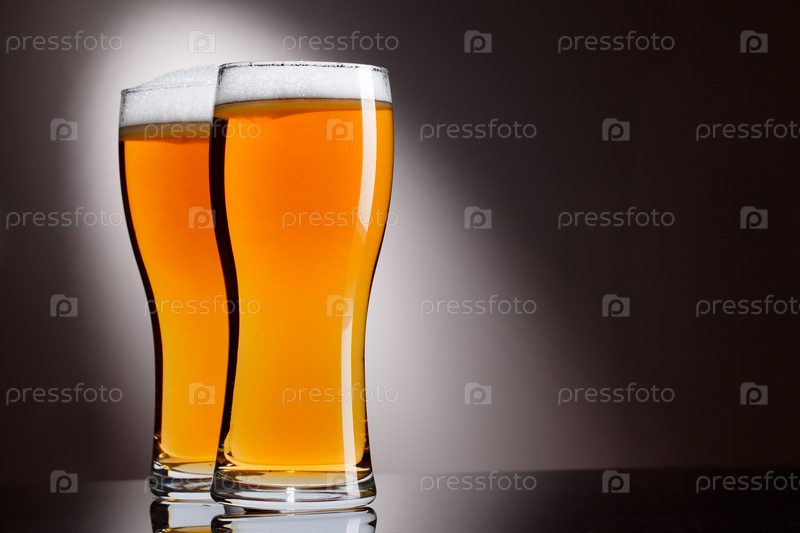 Два бокала пива на темном фоне