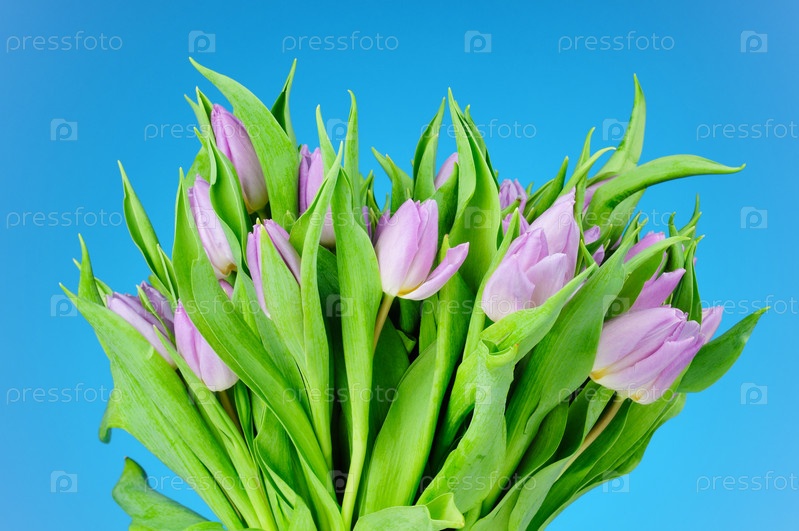 Фиолетовые тюльпаны на синем фоне