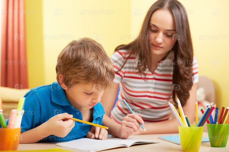 Школьник учит уроки