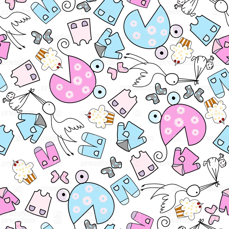 Фон с аистом и детской одеждой