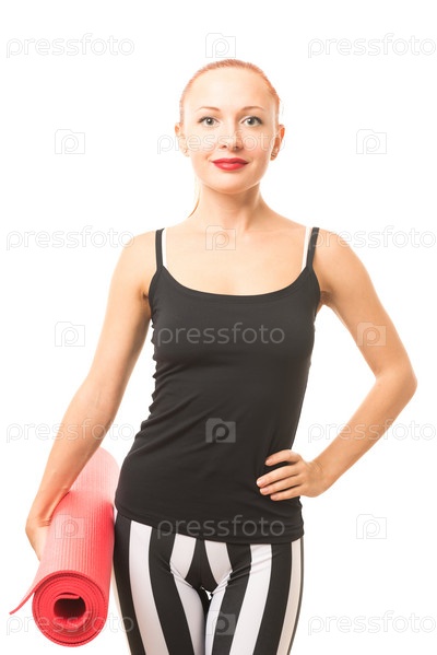 Женщина с матом для йоги