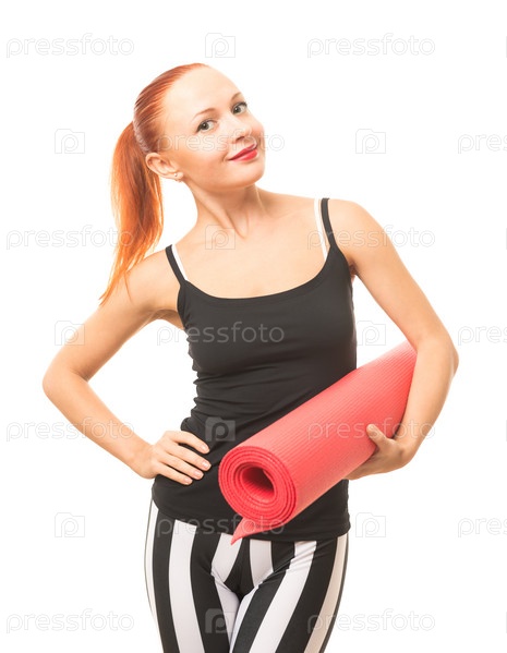 Женщина с матом для йоги
