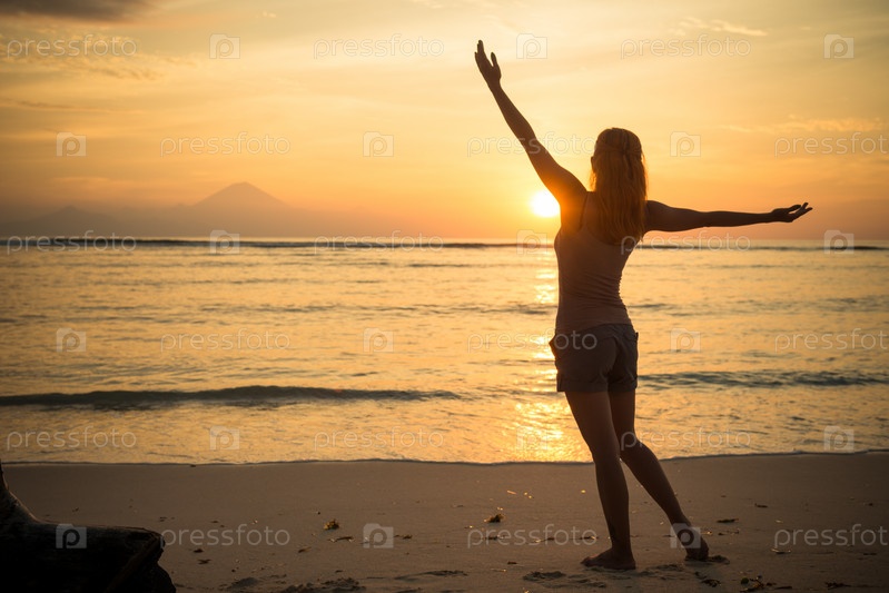Женщина смотрит на закат