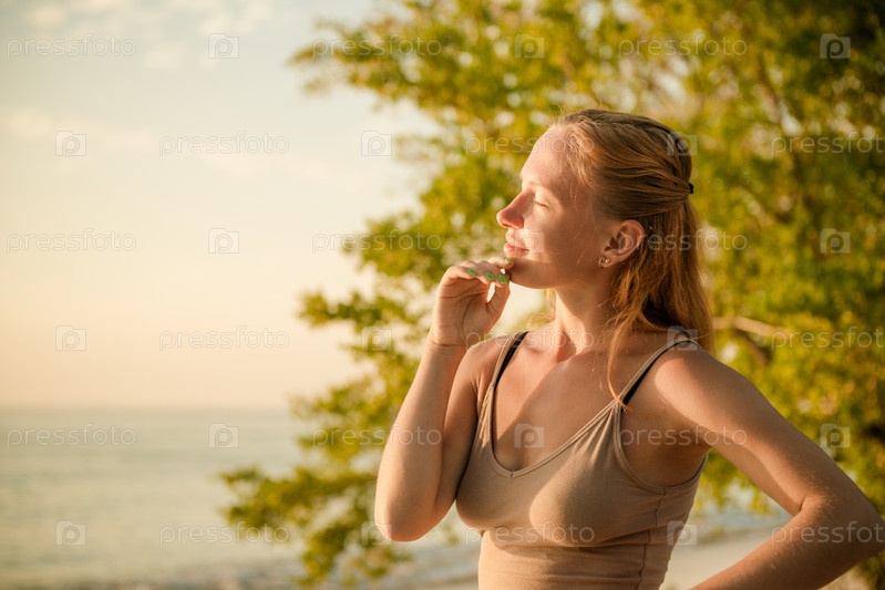 Женщина смотрит на закат