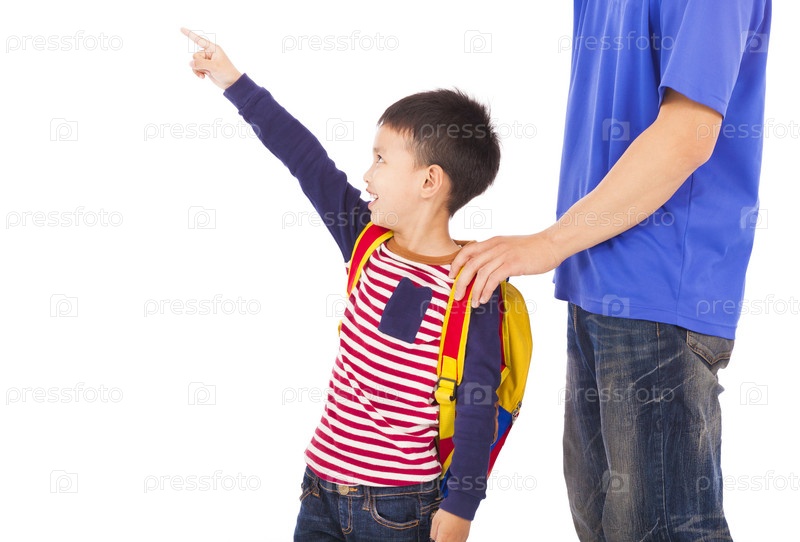Отец ведет сына в школу