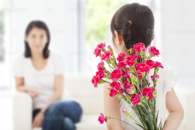 Девочка дарит матери цветы