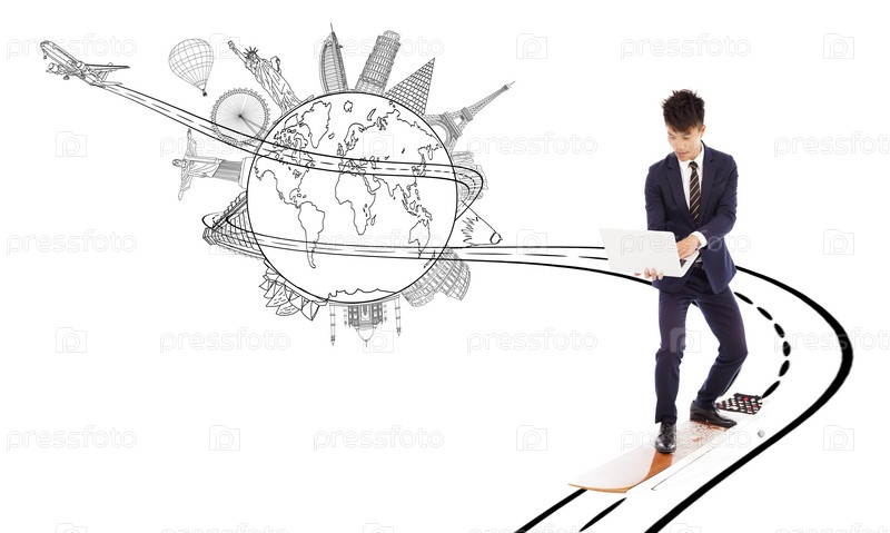 Деловой человек пользуются высокой скоростью всемирной паутины