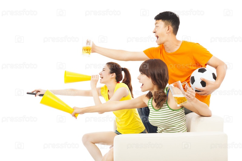 Люди кричат во время просмотра футбольного матча