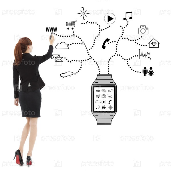 Бизнес-леди рисует иконки приложений