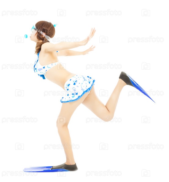 Женщина изображает ныряльщика