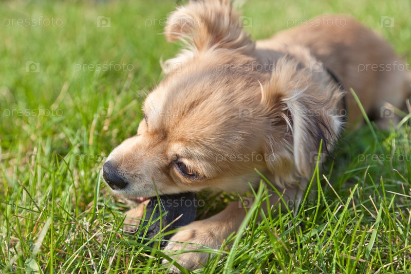 Щенок играет в траве